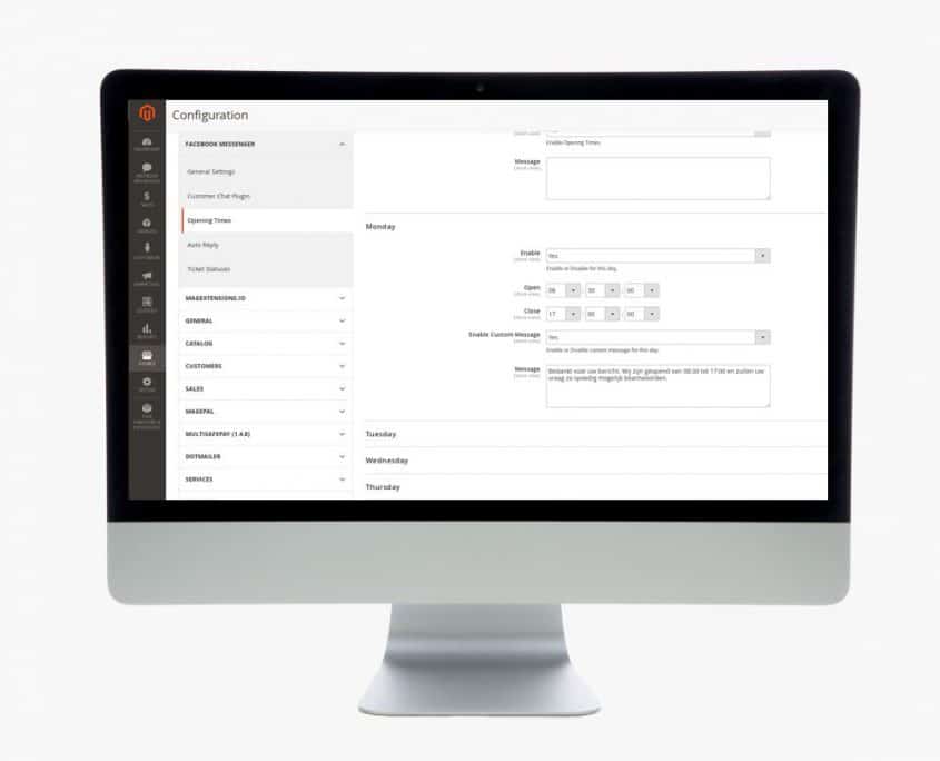 Chatting to your customers using Facebook Customer Chat will give them the opportunity to ask their questions from everywhere, at any time they like. However, it is not always the most practical thing to do for your support office, since they have to switch between Facebook and Magento 2 all the time. The Facebook Customer Chat extension integrates Facebook Customer Chat into your Magento 2 store, which will give you a perfect overview of all incoming questions. This will save a lot of time, since you do not need to check Faceobook all the time, but can just keep looking at your Magento 2 window. Moreover, this extension helps you to retrieve the corresponding order for every customer, so you can more efficiently resolve problems. This will optimize your support office. In addition, you can customize all features of the chat window, set opening times and configure automatic responses and overdue times, until everything perfectly fits your preferences.